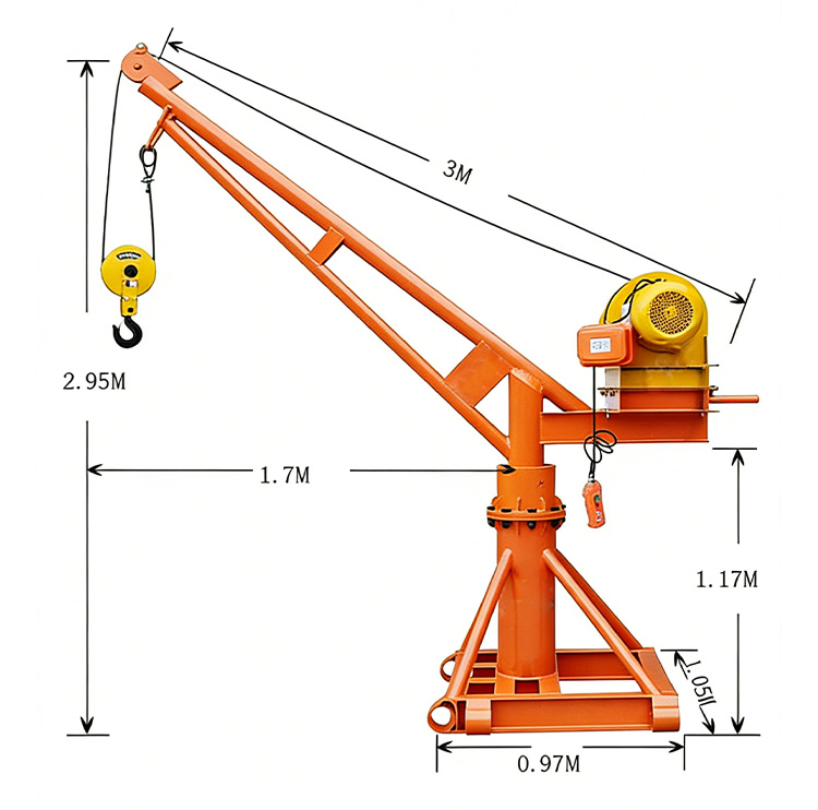 الرافعة الخارجية 2000 كجم من Hebei Baiyi هي منتج مصنوع حسب الطلب. يمكن تخصيص إطالة ذراع الرافعة، وارتفاع العمود، والجهد، والحبل السلكي لتلبية احتياجاتك. مهلة التخصيص قصيرة. للاستفسارات عن التخصيص، يرجى الاتصال بالرقم 15133220087 (معرف WeChat هو نفسه)، أو إرسال بريد إلكترونيkate@syhoist.com. مرحبا بكم في الاتصال بنا!