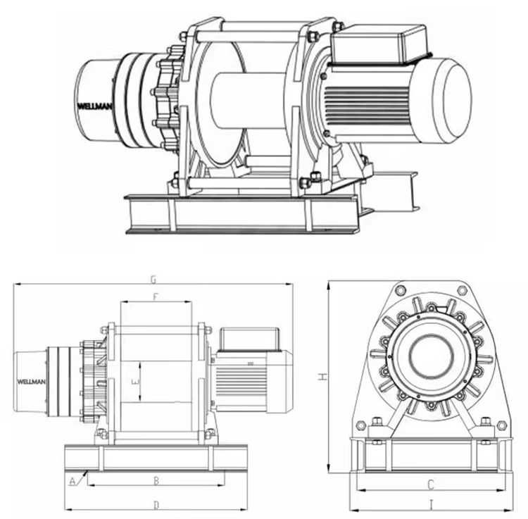 ج: لوحة تركيب الونش الكهربائي: باستخدام قناة فولاذية ملحومة، من السهل تركيب ونش الحبل السلكي بفتحات ثابتة.
