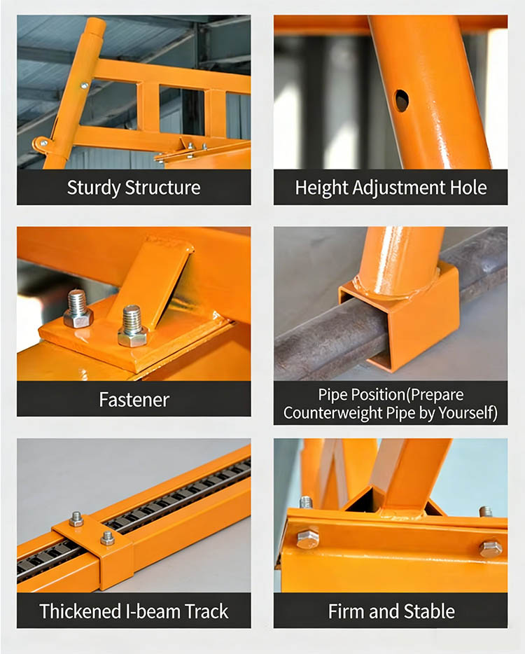 قوية ومستقرة: يتم تعزيز الأجزاء الرئيسية من خلال تصميم اللحام والتقوية، مما يجعل الماكينة بأكملها قوية من الناحية الهيكلية ويضمن عمليات رفع آمنة وموثوقة.